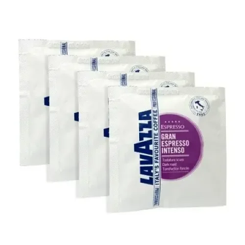 Lavazza Gran Espresso Intenso — Forța și caracterul espresso-ului italian dark roast în formatul profesional de 150 de monodoze ESE, cu un blend echilibrat de 50% Arabica și 50% Robusta, note intense de cacao și piper negru și o cremă compactă care definește un espresso puternic și hotărât.