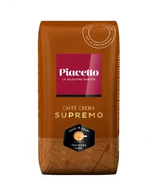 Cafea Piacetto Caffè Crema Supremo Boabe 1 kg — 100% Arabica din Brazilia, Certificat Rainforest Alliance, Dezvoltat cu Barista Sommelier Graziano Chessa: Prăjire Foarte Ușoară pentru Cremă Perfectă, Corp Plin, Aromă Delicată, Aciditate Zero — Cafeaua Ideală pentru HoReCa și Aparatele Bean-to-Cup.