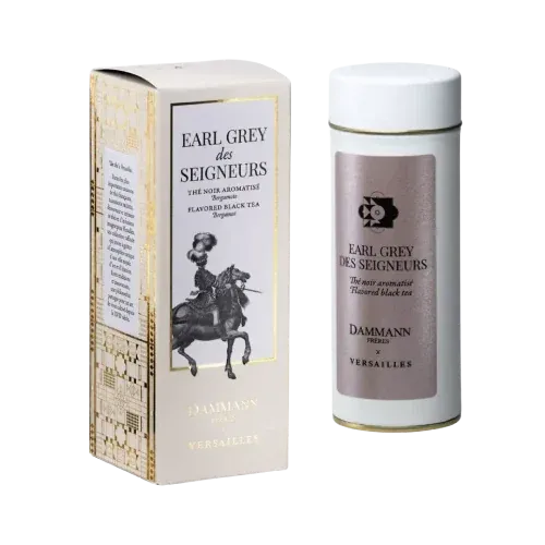 Earl Grey des Seigneurs face parte din colecția Versailles — creată de Dammann Frères în colaborare cu Palatul Versailles ca omagiu adus artei de a trăi franceze cultivate din secolul al XVII-lea. Un ceai cu un nume care evocă nobilimea și rafinamentul, plasat într-o colecție regală, servit în cutia metalică emblematică Dammann — o alegere consecventă de la concept la executie.