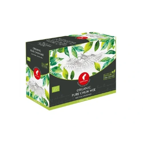 Ceaiul organic Julius Meinl Big Bag China Green Pure Chun Mee este un ceai verde pur certificat organic, creat de Julius Meinl — brandul vienez cu tradiție din 1862 — dintr-un sortiment chinezesc clasic și foarte apreciat de cunoscătorii de ceai verde autentic. Chun Mee — care în traducere înseamnă „sprânceană prețioasă", o referire la forma caracteristică a frunzelor ușor curbate — este recoltat în provincia Jiangxi din China, o regiune cu o tradiție îndelungată în producerea ceaiurilor verzi de calitate superioară. Ceaiul este 100% pur, fără aromatizări sau adaosuri, și se distinge printr-un profil aromatic natural, proaspăt și ușor acrișor — specific ceaiurilor verzi Chun Mee — cu o culoare galben-pai deschisă și luminoasă în ceașcă și un gust curat, delicat și revigorant. Bogat în antioxidanți naturali și cu cafeină moderată, ceaiul verde Chun Mee este recomandat dimineața sau la prânz pentru energie și claritate mentală. Fiecare plic Big Bag conține 3,25 gr de ceai verde organic pur, sigilat într-o pungă de filtrare 100% biodegradabilă din material Sustico®, învelită în ambalaj NatureFlex™ complet biodegradabil — concepute pentru preparare la ceainic de 450 ml, cu timp de infuzare de 1-3 minute la 80-90°C. Alegerea perfectă pentru cafenele, hoteluri și iubitorii de ceai verde pur premium care apreciază autenticitatea chineză și tradiția vieneză în fiecare ceașcă.