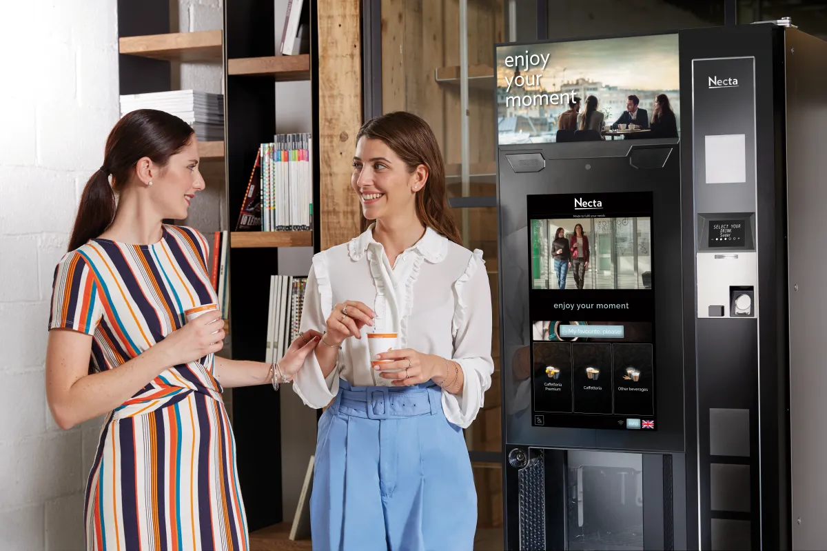 Necta a depasit granitele tehnologiei inovatoare prin gandire strategica si profesionalism desavarsit. Datorita celor 40 de ani de experienta si cercetare Necta, gama completa de automate ofera o varietate de bauturi pentru cele mai variate locatii: de la birouri mici la sali de asteptare, locatiii aglomerate sau institutii publice. Distribuitorul automat Barista 1000 Touch Dual Cup Double Espresso este destinat spatiilor exigente ce ofera o varietate de bauturi personalizabile si o experienta cu totul deosebita. Acest model de vending de ultima generatie este dotat cu ecran tactil din sticla securizata (6 mm) si are un design extrem de elegant, cu profile exterioare din aluminiu anodizat negru. Microprocesorul si software-ul avansat permit gestionarea usoara a masinii si un nivel ridicat de personalizare a interfetei grafice.