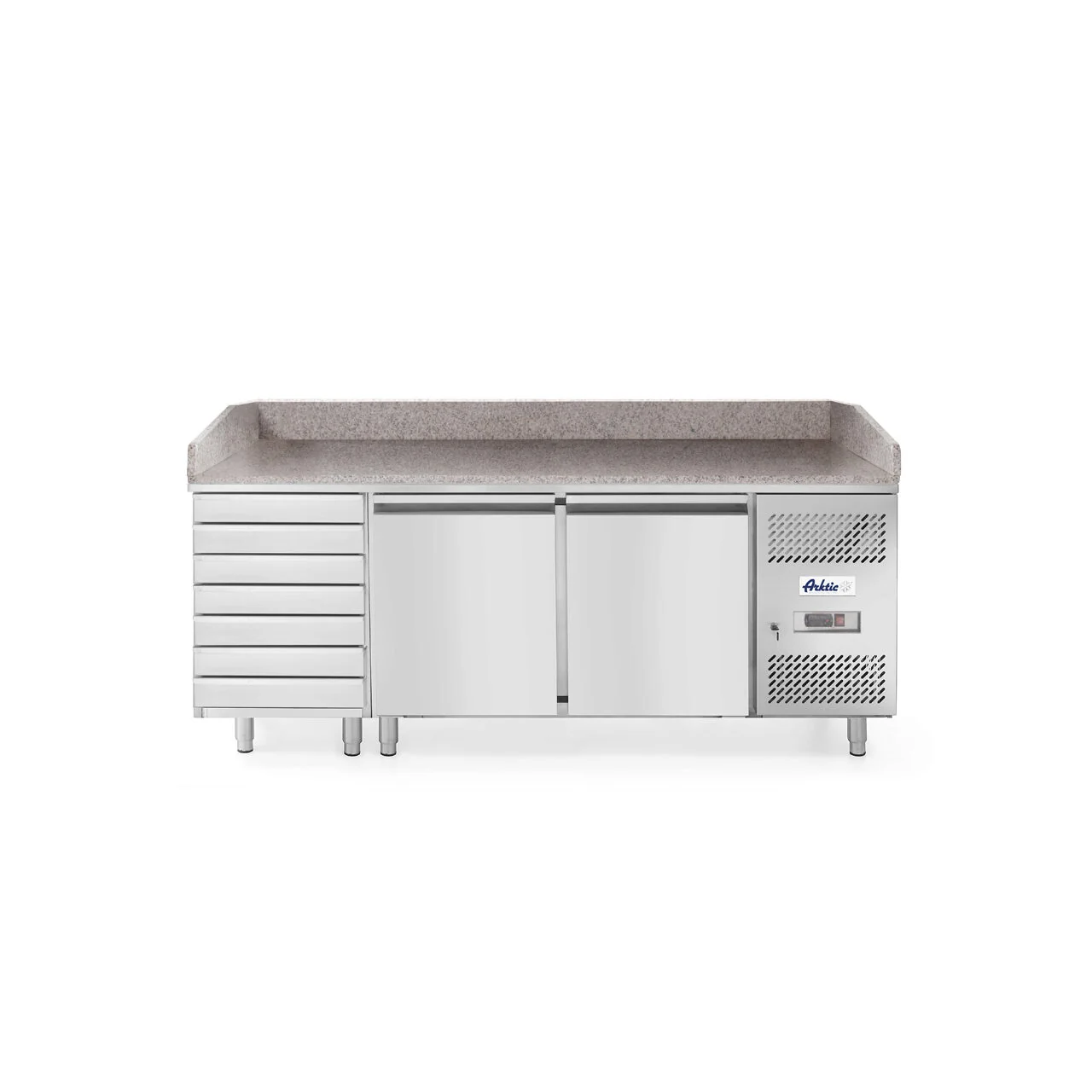 Masa rece cu 2 usi cu suprastructura si blat de lucru din granit, Arktic 900x700x(H)1070 mm