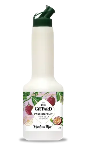 Giffard Piure Fructul Pasiunii 1L — Piure profesional de fructul pasiunii din gama Fruit for Mix Giffard, cu 54% suc și pulpă din concentrat, textură autentică și gust tropical autentic ușor acru-dulce, conceput pentru bartenderi care vor corpul și intensitatea fructului real în cocktailuri, mocktailuri și deserturi.