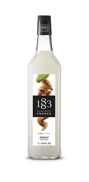 Sirop 1883 Migdale 1L — Siropul Orgeat premium al casei Routin, cu gustul subtil, moale și mătăsos al migdalelor dulci și culoarea albă lăptoasă caracteristică, creat de Maison Routin în Alpii francezi din aromă naturală de migdale amare — referința de bar pentru cocktailuri clasice și băuturi premium pe bază de cafea și lapte.