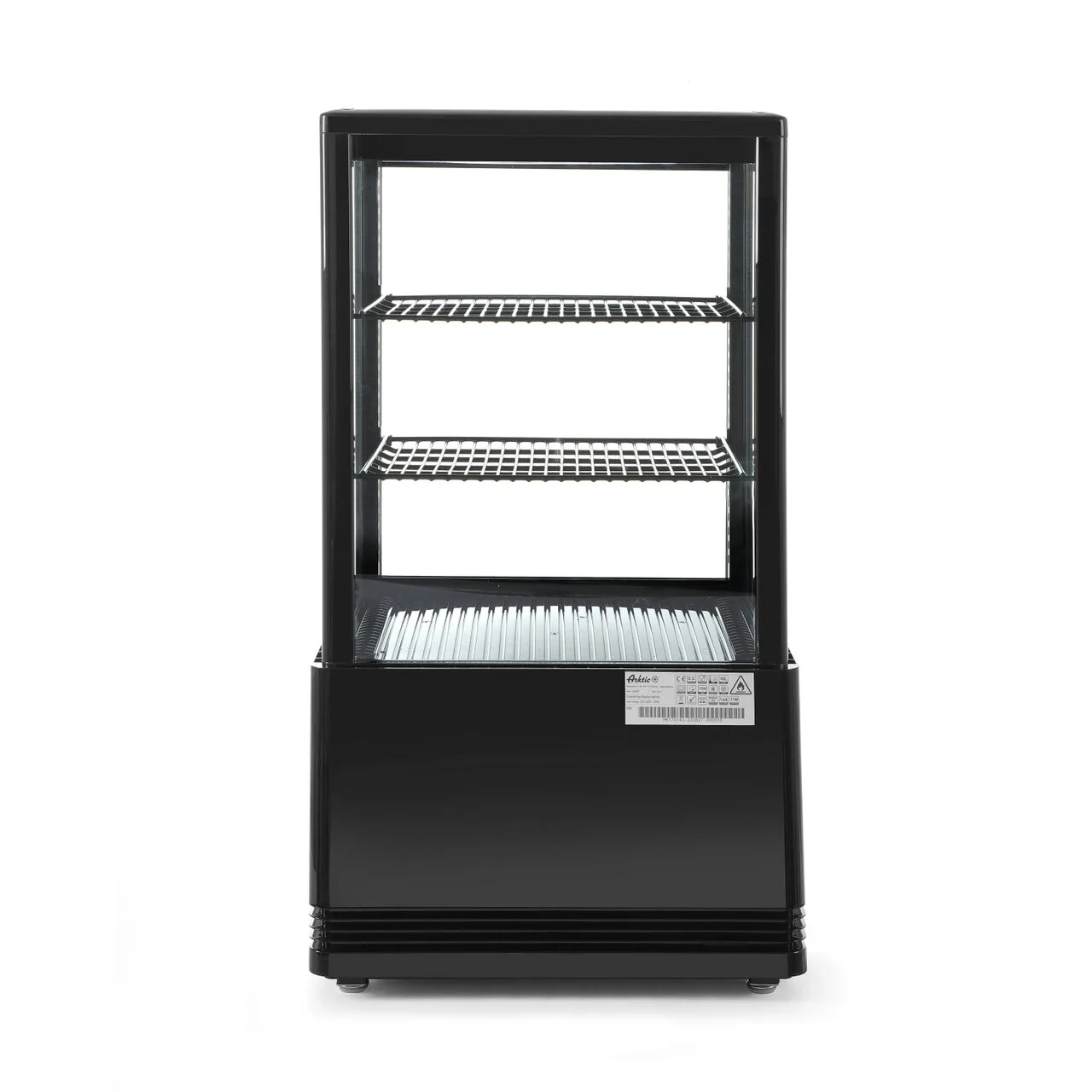 Vitrina rece pt prezentare, neagra, 58 lt, interval temp. 2-6 gr C, 170 W, 2 rafturi reglabile pe inaltime, ARKTIC by Hendi, 452x406x(H)816 mm, Clasa energetica C